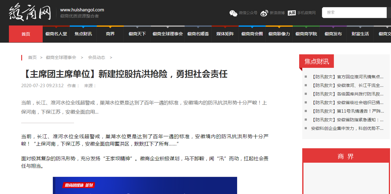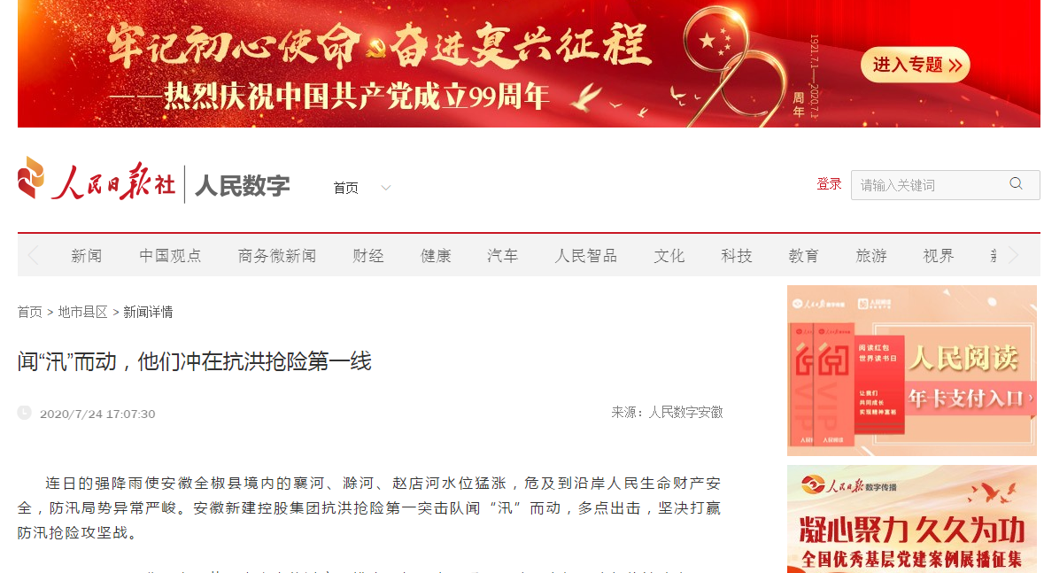 近日,安徽新建控股集團組織動員骨干力量踴躍參加抗洪搶險的事跡,先后被人民日報數字安徽網、中國新聞網、中國網、中國經濟新聞聯播網、徽商網、安徽消費網等各級媒體刊發(fā),充分展示了安徽新建人的社會責任與擔當,極大鼓舞了全公司廣大員工的士氣。