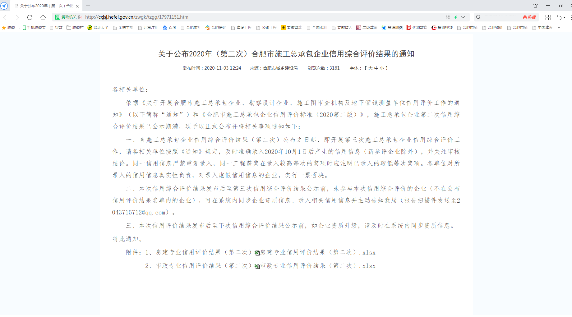 合肥市城鄉(xiāng)建設(shè)局依據(jù)《關(guān)于開(kāi)展合肥市施工總承包企業(yè)、勘察設(shè)計(jì)企業(yè)、施工圖審查機(jī)構(gòu)及地下管線測(cè)量單位信用評(píng)價(jià)工作的通知》和《合肥市施工總承包企業(yè)信用評(píng)價(jià)標(biāo)準(zhǔn)(2020第二版)》,合肥市城鄉(xiāng)建設(shè)局2020年(第二次)合肥市施工總承包企業(yè)信用綜合評(píng)價(jià)結(jié)果正式公布。安徽新建控股集團(tuán)有限公司榜上有名,榮獲2020 年(第二次)合肥市政專業(yè)3A級(jí)信用評(píng)級(jí)!
