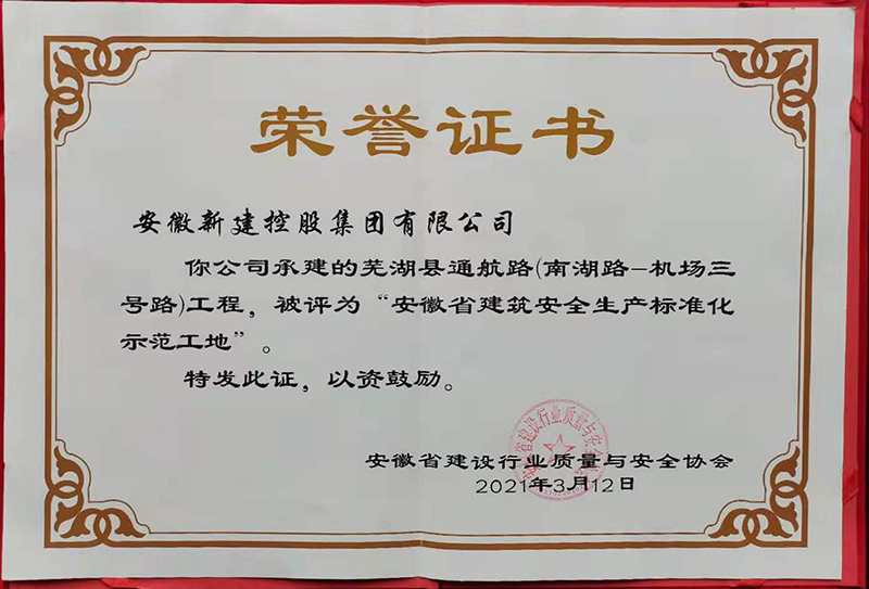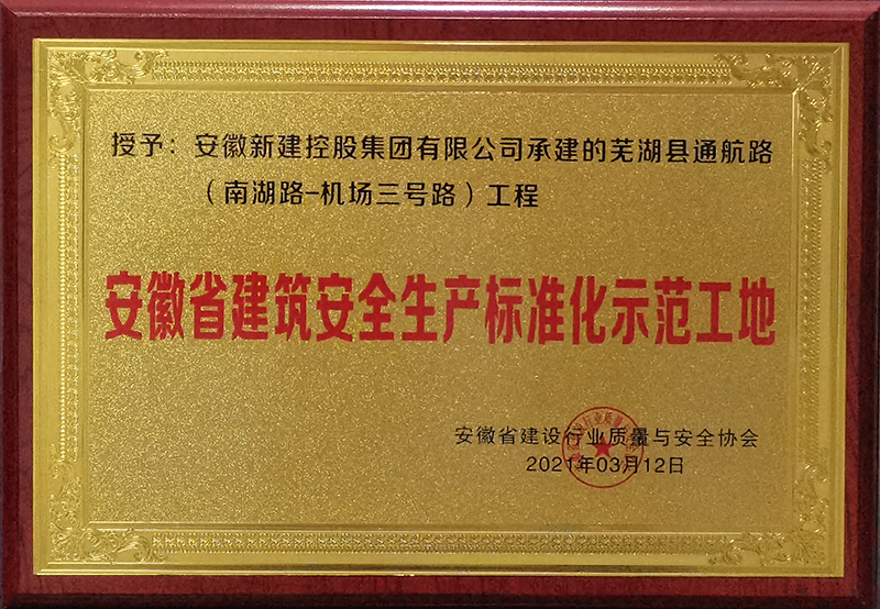 日前,安徽省建設(shè)行業(yè)安全協(xié)會公告2020年度第四批安徽省建筑安全生產(chǎn)標(biāo)準(zhǔn)化工地名單,由集團公司承建的蕪湖縣通航(南湖路-機場三號路)工程榮獲”安徽省建筑安全生產(chǎn)標(biāo)準(zhǔn)化示范工地”稱號。