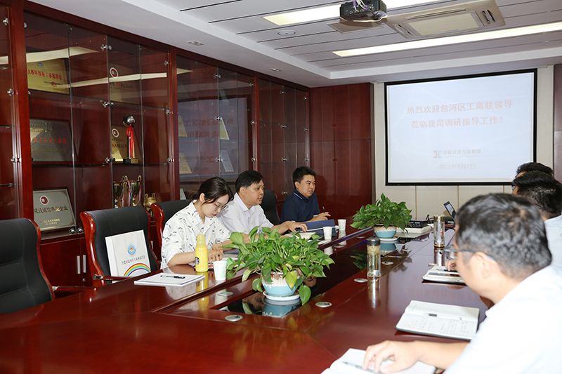 2021年9月7日上午,合肥市包河區(qū)工商聯(lián)副主席田虹、辦公室副主任耿祥軍等一行三人到集團(tuán)公司開展“學(xué)黨史、大走訪、大調(diào)研、解難題”調(diào)研活動(dòng),集團(tuán)公司行政總監(jiān)賀軍、經(jīng)營、工程、財(cái)務(wù)等相關(guān)部門負(fù)責(zé)人接待并參與調(diào)研座談。