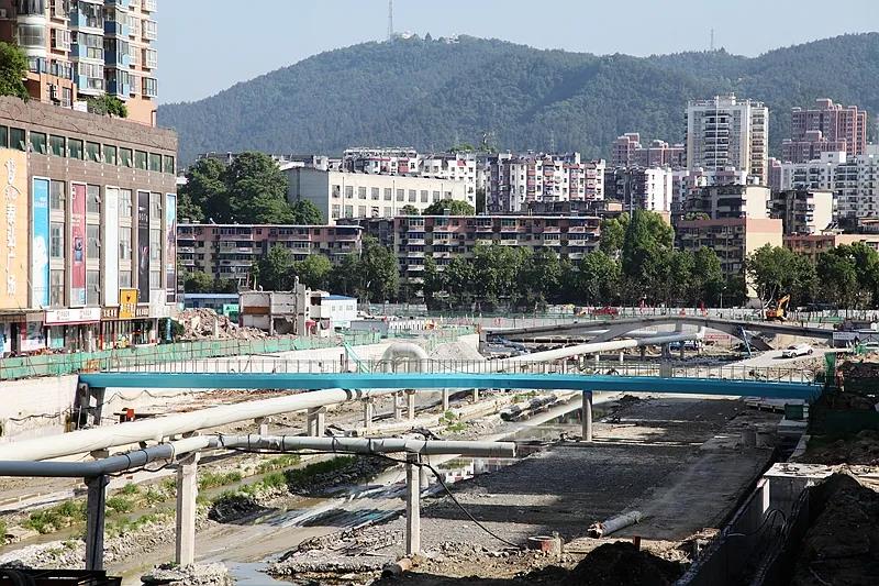 十堰市百二河生態(tài)修復(fù)工程分為“十堰春耕”、“風(fēng)華老街”、“上善若水”、“福壽康寧”、“東風(fēng)浩蕩”、“萬(wàn)涓歸流”六個(gè)片區(qū)。集團(tuán)公司承建的施工二標(biāo)段位于“上善若水”、“福壽康寧”片區(qū),全長(zhǎng)約3.5公里。主要施工內(nèi)容為河道兩側(cè)鋼筋混凝土雨水污水排水涵,包括1公里的河道中間子槽、景觀園林綠化,外加岸上熱力管溝及強(qiáng)弱電排管,施工總工期為660日歷天,中標(biāo)總價(jià)2.18億元。