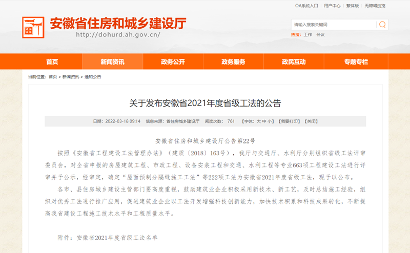3月18日,安徽省住房和城鄉(xiāng)建設(shè)廳發(fā)布公告,按照《安徽省工程建設(shè)工法管理辦法》,經(jīng)省級(jí)工法評(píng)審委員會(huì)審定,新建集團(tuán)申報(bào)的一項(xiàng)“黃土地質(zhì)鉆孔樁綠色施工工法AHGF209—21”成功獲得安徽省2021年度省級(jí)工法認(rèn)證。