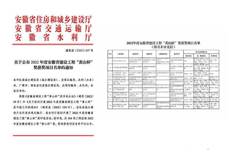 近日,安徽省住房建設(shè)廳公布2022年度安徽省建設(shè)工程“黃山杯”(省優(yōu)質(zhì)工程獎(jiǎng))獲獎(jiǎng)名單,安徽新建承建的全椒縣站前路道路及火車站廣場(chǎng)改造工程、蕪湖縣通航路(南湖路——機(jī)場(chǎng)三號(hào)路)工程、廬江縣泥河路工程三標(biāo)段3個(gè)建設(shè)工程榮膺該獎(jiǎng)項(xiàng)。