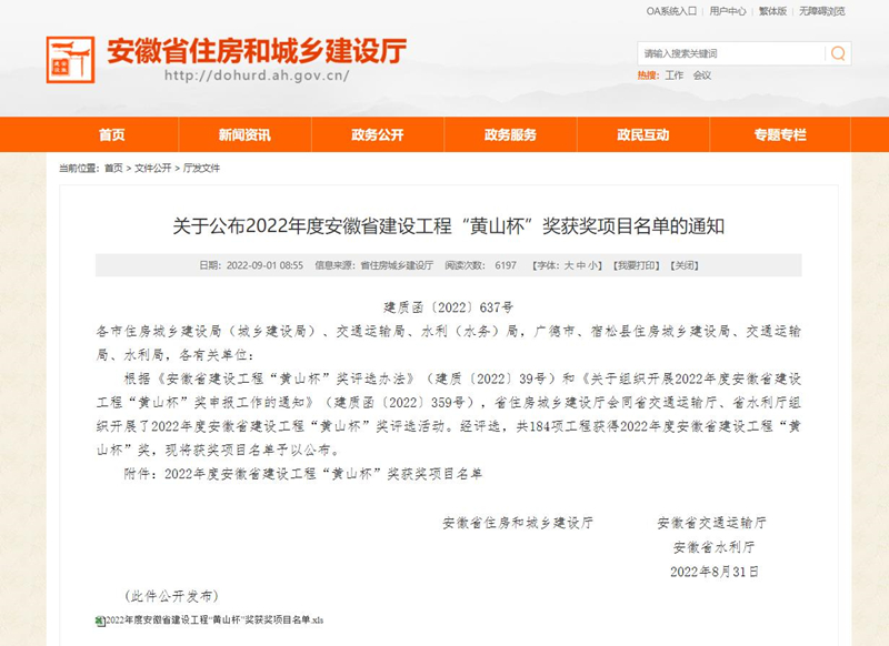 此次三項(xiàng)工程榮獲“黃山杯”獎(jiǎng),是對(duì)公司施工質(zhì)量水平的充分肯定,安徽新建將進(jìn)一步加強(qiáng)在建項(xiàng)目質(zhì)量管理,推廣獲獎(jiǎng)項(xiàng)目的先進(jìn)經(jīng)驗(yàn)和做法,用質(zhì)量鞏固市場(chǎng),不斷提升公司核心競爭力,以質(zhì)取勝,追求卓越,打造更多精品工程,為樹立企業(yè)品牌形象,推動(dòng)社會(huì)高質(zhì)量發(fā)展,貢獻(xiàn)更多力量!
