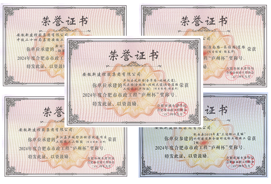 近日,合肥市市政工程協(xié)會(huì)頒發(fā)2024年度合肥市市政工程“廬州杯”獎(jiǎng)獲獎(jiǎng)項(xiàng)目榮譽(yù)證書,集團(tuán)公司五項(xiàng)工程榮獲2024年度合肥市市政工程“廬州杯”獎(jiǎng),獲獎(jiǎng)數(shù)量再創(chuàng)新高。