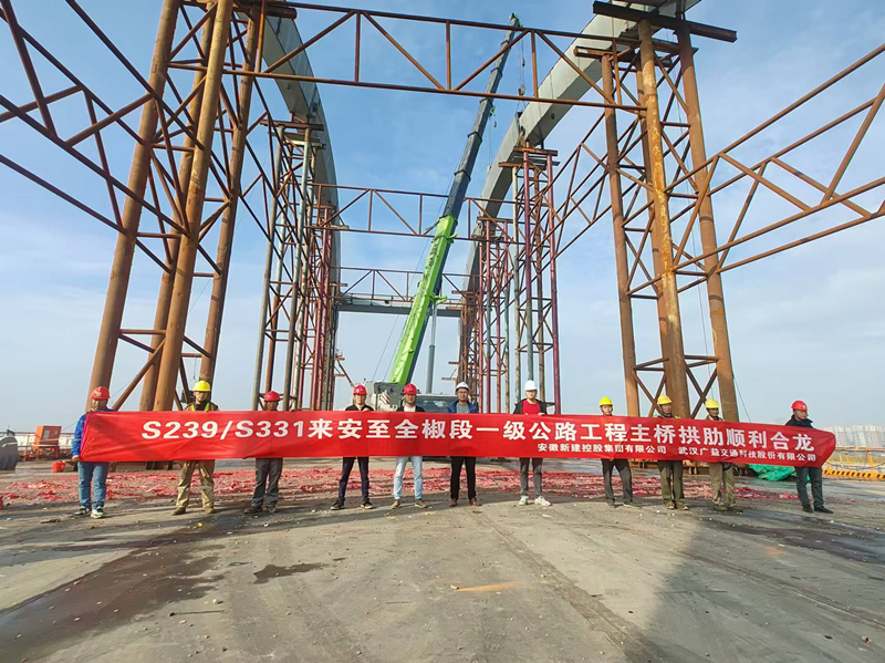 11月10日,隨著最后一節(jié)鋼管拱肋節(jié)段吊裝,嚴(yán)絲合縫安裝在橋墩上,集團(tuán)公司承建的S239/S331來安至全椒段一級公路工程主橋拱肋順利合龍,為下一步大橋吊桿系桿施工打下堅實基礎(chǔ)。