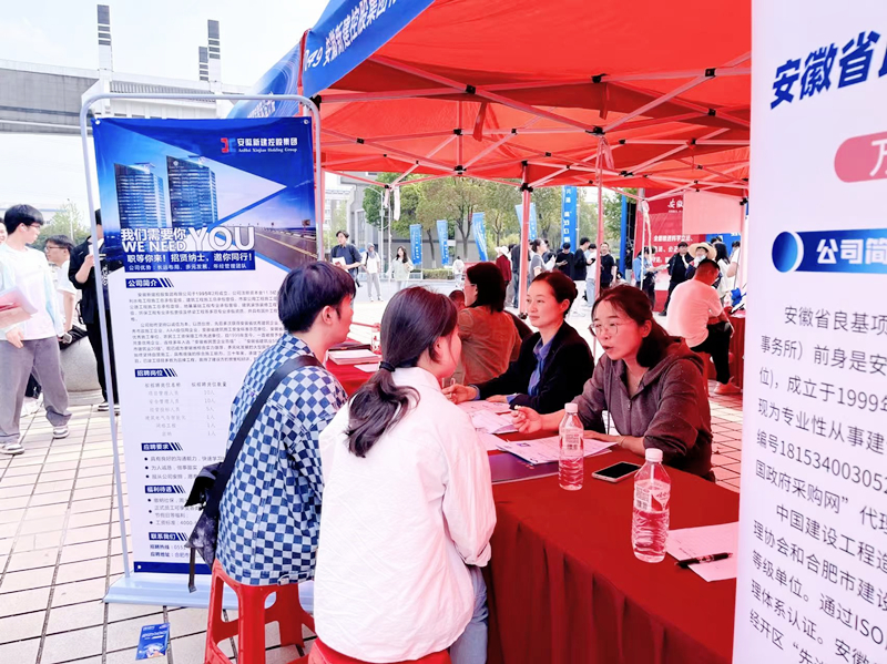 4月9日,由省住房和城鄉(xiāng)建設(shè)廳、省教育廳聯(lián)合主辦的“人才興皖‘就’在江淮”安徽省住房城鄉(xiāng)建設(shè)行業(yè)2025屆高校畢業(yè)生春季專(zhuān)場(chǎng)招聘會(huì),在安徽建筑大學(xué)盛大舉行。我司積極響應(yīng)號(hào)召,作為優(yōu)秀建筑企業(yè)之一,參加了此次招聘會(huì),為畢業(yè)生提供了廣闊的就業(yè)空間和發(fā)展平臺(tái)。