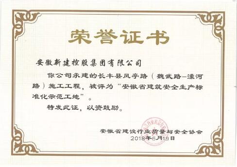 近日,安徽省建設(shè)行業(yè)質(zhì)量與安全協(xié)會公布了2018年度第一批安徽省建筑安全生產(chǎn)標(biāo)準(zhǔn)化示范工地(小區(qū))名單,由我公司承建的鳳亭路(魏武路-濛河路)項目榮登榜單!