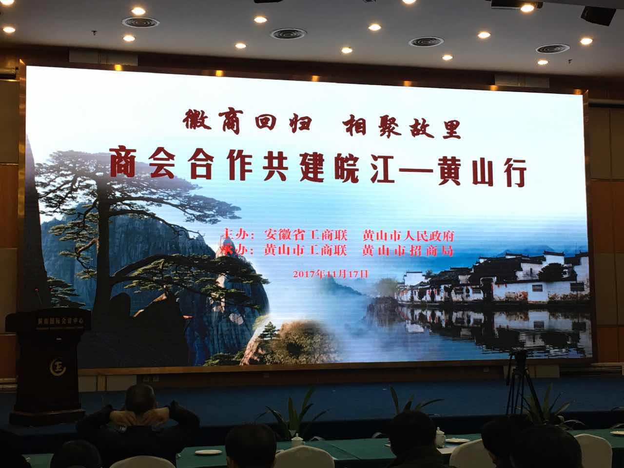 2017年11月16日至17日,安徽省工商聯(lián)和黃山市共同舉辦“商會合作共建皖江—黃山行”活動。此次活動旨在深入貫徹落實黨的十九大精神,以“徽商回歸,相聚故里”為主題,進一步推動招商引資,引才引智工作,大力促進黃山市經(jīng)濟轉(zhuǎn)型創(chuàng)新發(fā)展?;顒悠陂g,來自全國各省市的商會領導和企業(yè)家參觀了黃山市文化博物館,考察了創(chuàng)業(yè)小鎮(zhèn),黃山市政府進行了招商推薦,省工商聯(lián)與黃山市政府簽訂了戰(zhàn)略合作協(xié)議,有14個投資項目進行了現(xiàn)場簽約。安徽新建控股集團董事長王杰英、常務副總經(jīng)理馮永曜與安徽省城市基礎設施投資商會的多名企業(yè)家代表一起參加了該項活動。