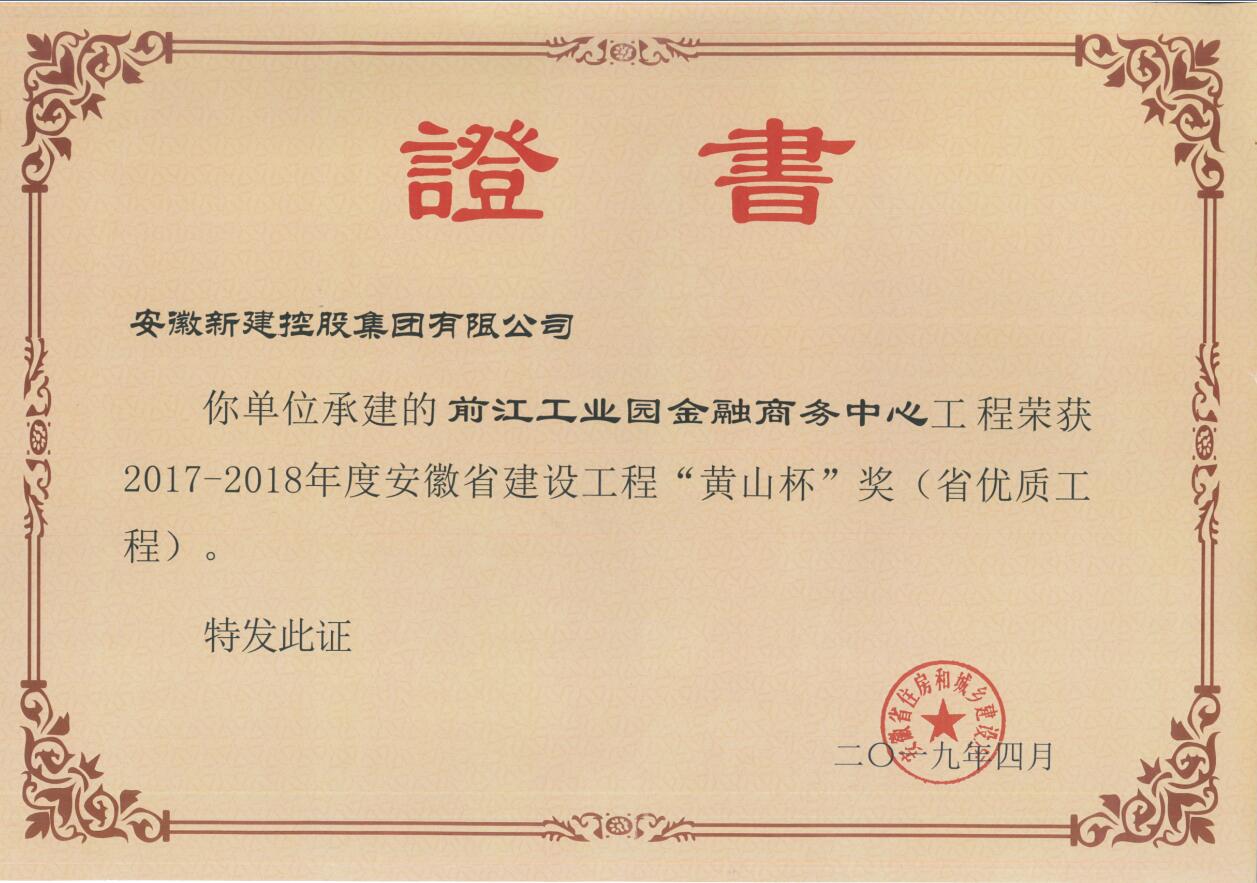 日前,由我公司承建的池州市前江工業(yè)園金融商務中心項目喜獲2017-2018年度安徽省優(yōu)質工程“黃山杯”!