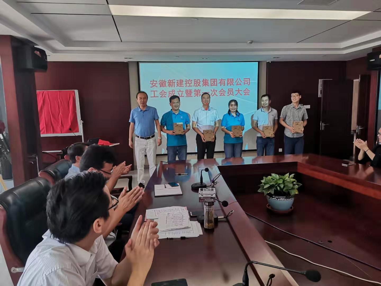 公司行政總監(jiān)賀軍宣讀合肥市蜀山區(qū)南七街道總工會《關(guān)于同意成立安徽新建控股集團有限公司工會的批復(fù)》文件。