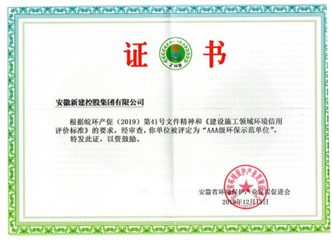 日前,安徽省環(huán)境保護(hù)產(chǎn)業(yè)發(fā)展促進(jìn)會(huì)根據(jù)皖環(huán)產(chǎn)促(2019)第41號(hào)文件精神和《建設(shè)施工領(lǐng)域環(huán)境信用評(píng)價(jià)標(biāo)準(zhǔn)》公布了環(huán)保示范單位名單,我公司榮獲“AAA級(jí)環(huán)保示范單位”。