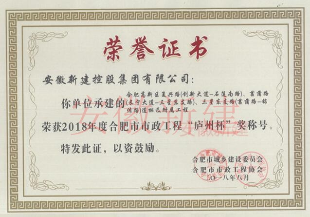 安徽省市政工程優(yōu)質(zhì)獎(jiǎng)