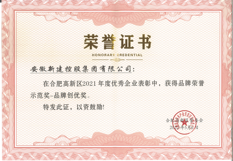 為推動高新區(qū)經(jīng)濟持續(xù)穩(wěn)定發(fā)展,進一步發(fā)揮企業(yè)示范效應(yīng),發(fā)揮獎勵資金引導(dǎo)作用,6月10日,合肥高新區(qū)召開2022年企業(yè)表彰大會,安徽新建控股集團在此次表彰中,榮獲品牌榮譽示范獎——品牌創(chuàng)優(yōu)獎。