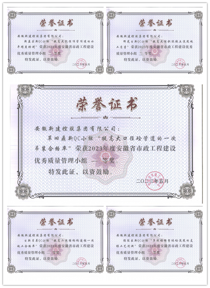 交流會上,專家評委從選題、原因分析、對策與實施、效果、發(fā)布等方面對來自全省共計256個QC成果進行了評審,并對獲得2023年安徽省市政工程建設優(yōu)秀QC小組活動成果進行表彰。集團申報的5項QC成果“提高大口徑砼管道的一次吊裝合格率”、“提高大孔徑頂管頂進的水平精度控制”、“提高大體積混凝土澆筑施工質(zhì)量”、“提高二次結構構造柱一次施工合格率”、“多跑樓梯整體砼澆筑的支模工藝創(chuàng)新”,分別獲得一等獎1項、二等獎3項、三等獎1項成績,榮譽數(shù)量和質(zhì)量均創(chuàng)新高。