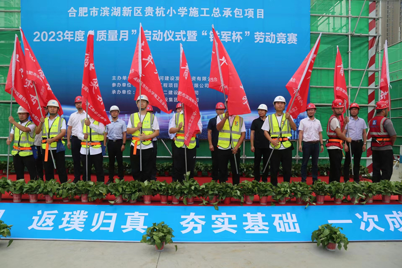 為貫徹、落實好全國“質(zhì)量月”活動,進(jìn)一步深化“增強質(zhì)量意識,推進(jìn)高質(zhì)量發(fā)展”主題,9月6日,集團公司與中建八局二公司聯(lián)合體承建的濱湖新區(qū)貴杭路小學(xué)施工總承包項目組織開展2023年度“質(zhì)量月”暨“鐵軍杯”勞動競賽啟動儀式。包河區(qū)住建局領(lǐng)導(dǎo)、建發(fā)公司、質(zhì)監(jiān)站、安徽科創(chuàng)公司、中建八局二公司等單位負(fù)責(zé)人以及相關(guān)人員參加。