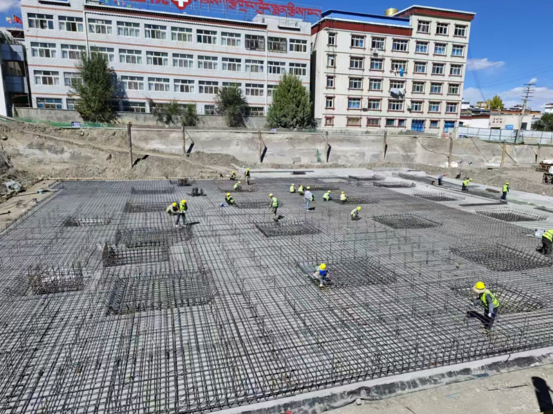 10月12日,在日喀則市藏醫(yī)院中醫(yī)特色重點醫(yī)院建設施工現(xiàn)場,機器轟鳴聲不絕于耳,施工車輛來回穿梭,工人們緊張而有序地忙碌著。目前筏板基礎(chǔ)綁扎鋼筋施工整體完成95%,即將進行基礎(chǔ)混凝土澆筑施工。