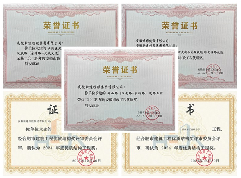 新年伊始,集團(tuán)公司承建的多個(gè)項(xiàng)目斬獲殊榮。安徽省市政工程協(xié)會(huì)公布的2024年度安徽市政工程優(yōu)質(zhì)獎(jiǎng)項(xiàng)目名單,公司承建的三個(gè)項(xiàng)目獲得獎(jiǎng)項(xiàng),分別是:姑山路(淮南路-長臨路)道路工程、廬陽區(qū)鳳祥路(金翠路-北城大道)鳳慶路(金珠路-北城大道)兩條道路工程施工(廬陽段)、全椒縣城市更新和補(bǔ)短板項(xiàng)目(南屏路改造工程)。